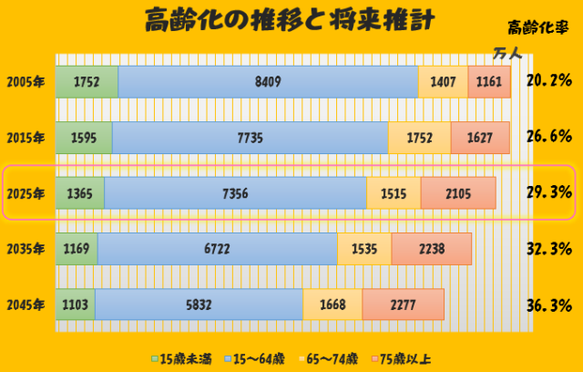 - 2025年の高齢化率は「29.3%」